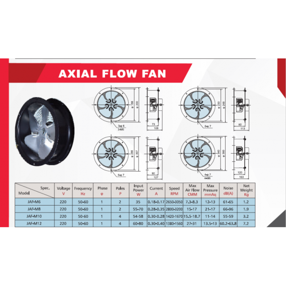 لأنها صممت لتلبي أصعب ظروف التشغيل، وتوفر تهوية قوية مع الحفاظ على الكفاءة وتوفير الطاقة. سواء كنت بحاجة إلى مروحة صناعية تتحمل العمل المتواصل أو تبحث عن تحسين جودة الهواء في مكان العمل، فإن JAF-M10 هي الاختيار الذكي.