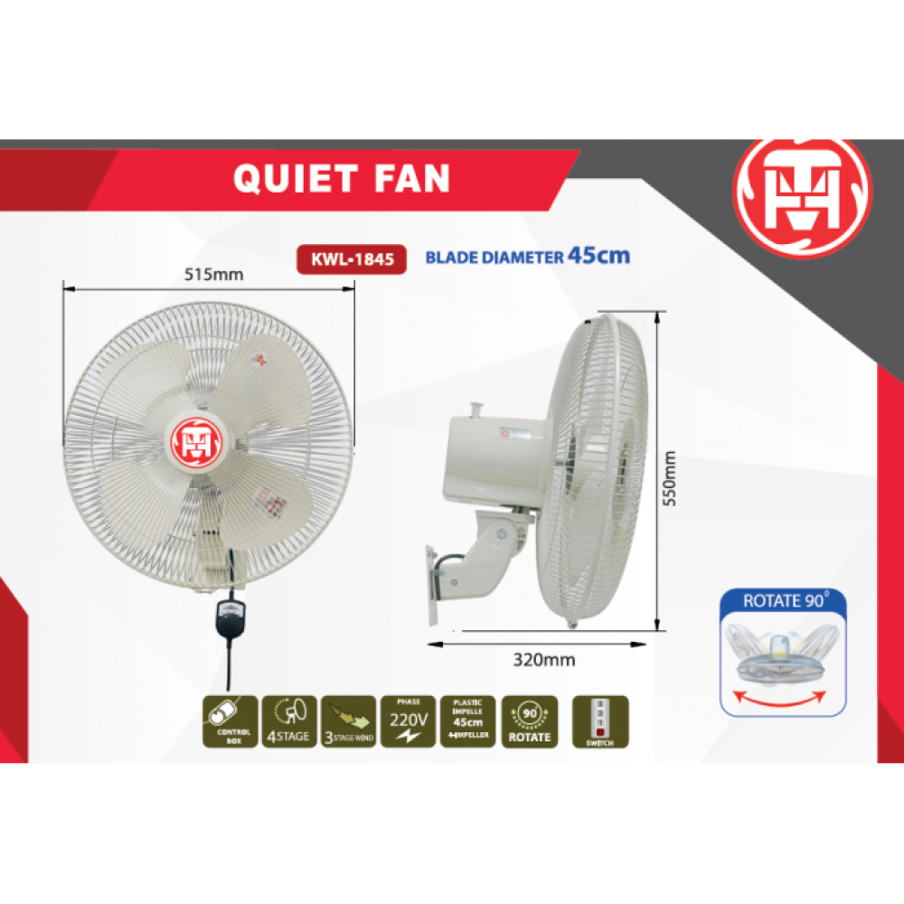 مروحة KWL-1845 هي الخيار المثالي إذا كنت تبحث عن مروحة هادئة، فعالة، وأنيقة. لا تفوت الفرصة، وتمتع بالراحة والتهوية المثالية في كل مكان!