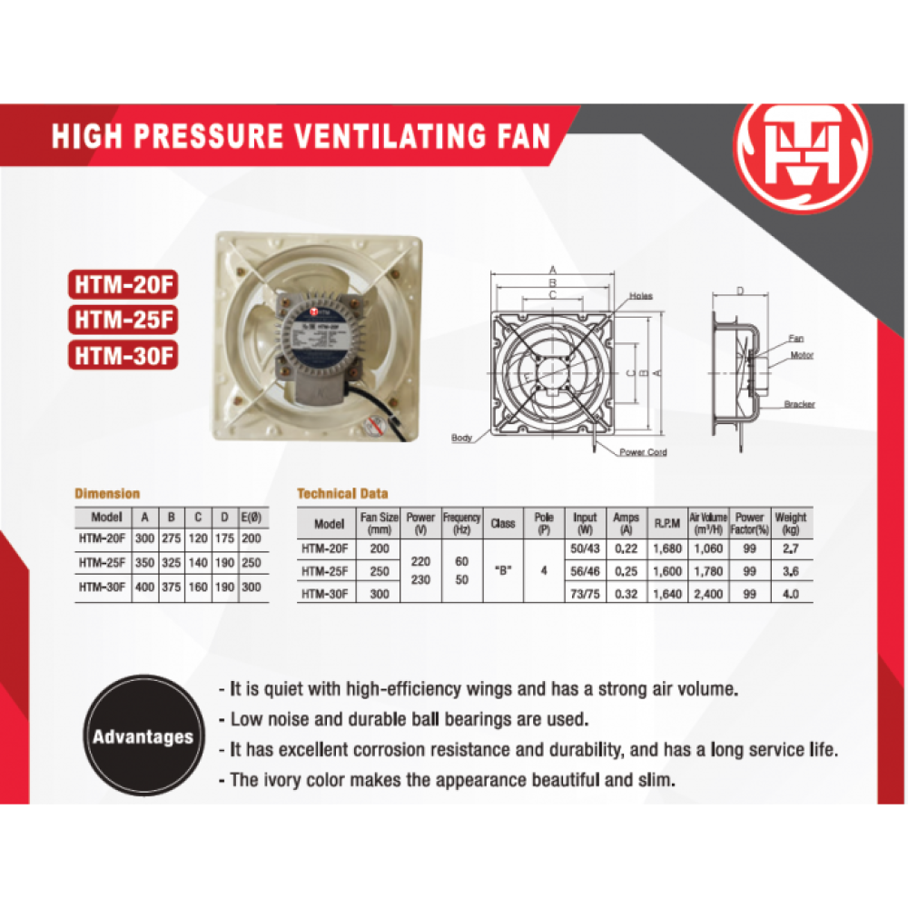 مع مروحة HTM-30F، يمكنك ضمان تهوية قوية ومستمرة في بيئات العمل الصعبة أو المساحات ذات الضغط العالي.