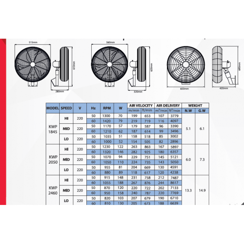 إذا كنت تبحث عن مروحة صناعية مثبتة على الحائط بقدرة عالية لتبريد وتهوية المساحات الكبيرة بكفاءة، فإن KWP-2460 هي الخيار المناسب.